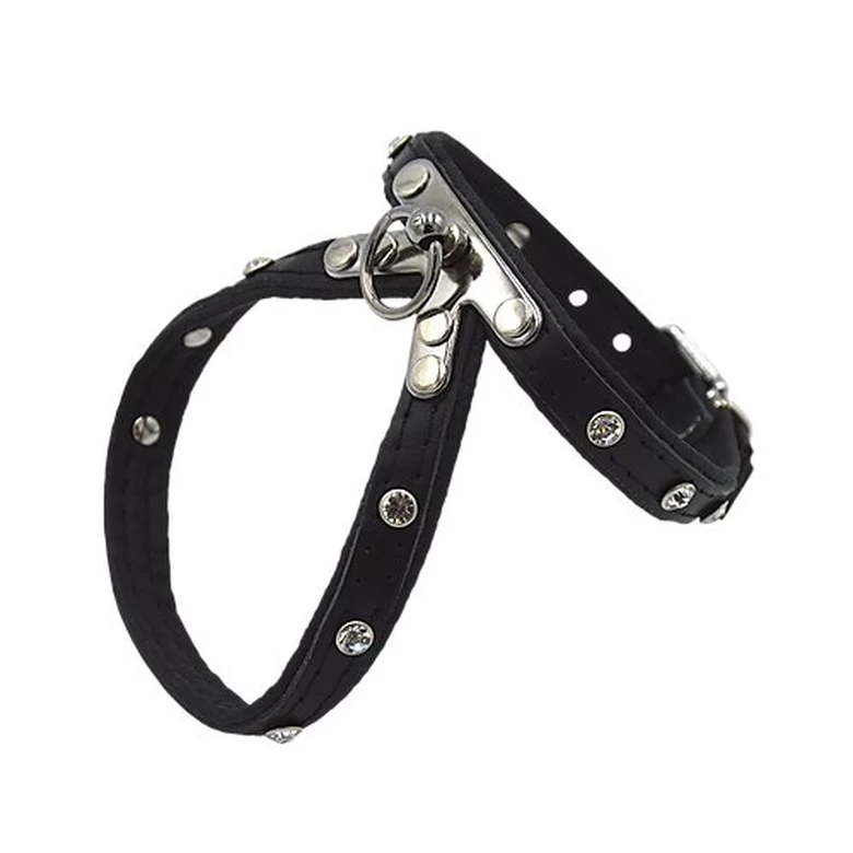 Harnais avec strass pour chien réglable, 100% cuir nappa de vache, souple et résistant, tanné en Italie.Tailles différentes pour tous les types de chiens sauf les chiens de type bulldog (à large poitrine).