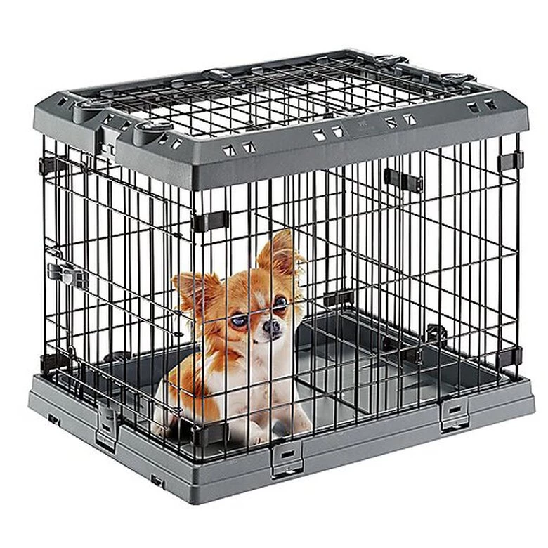 Box pour chiens pliable, haute qualité et robuste, anti-dérapant avec 2 ouvertures pratiques à l’avant et dessus s’ouvrant complètement pour une meilleure interaction pour le chien. Tapis hygiénique drainant, complètement pliable pour un gain de place.
