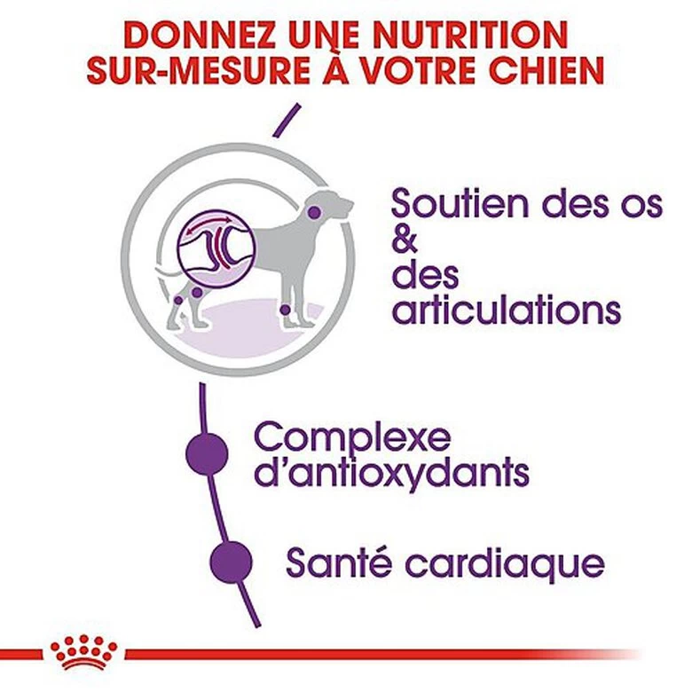 SOUTIEN DU CAPITAL OSTEO-ARTICULAIRE : Contribue à la bonne santé des os et articulations très sollicités chez les chiens de très grande taille.