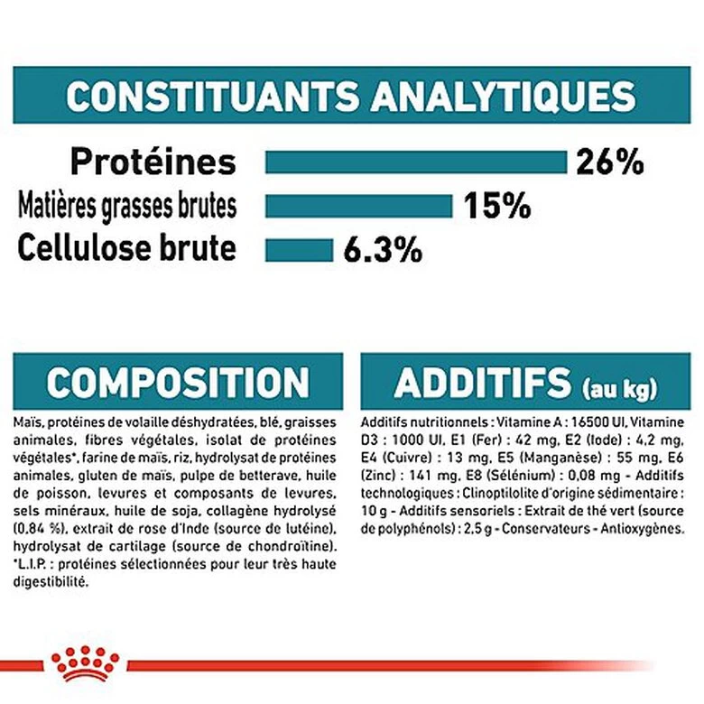 Les croquettes Royal Canin Maxi Joint Care sont conçues pour répondre aux besoins des chiens adultes de grande taille ayant une sensibilité articulaire. Ces croquettes peuvent être données dès l’âge de 15 mois.