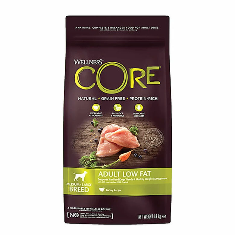 Les croquettes Wellness CORE Light Dinde contiennent de la dinde fraîche en premier ingrédient. Elles sont allégées (teneur réduite en matières grasses) pour aider les chiens à maintenir leur poids idéal.